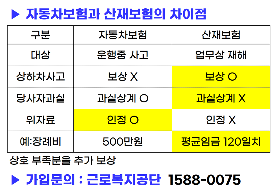 다만 산재보험에 가입한 경우에는 상하차 작업중 사고도 보상이 됩니다.
