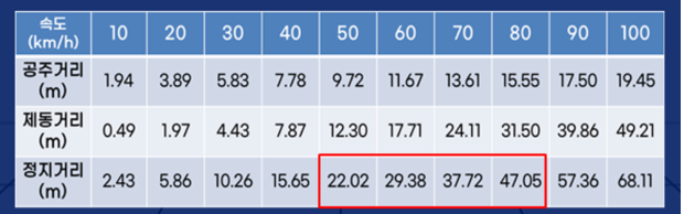 일반국도 : 60km->50m 이상 (건조한 도로인 경우)