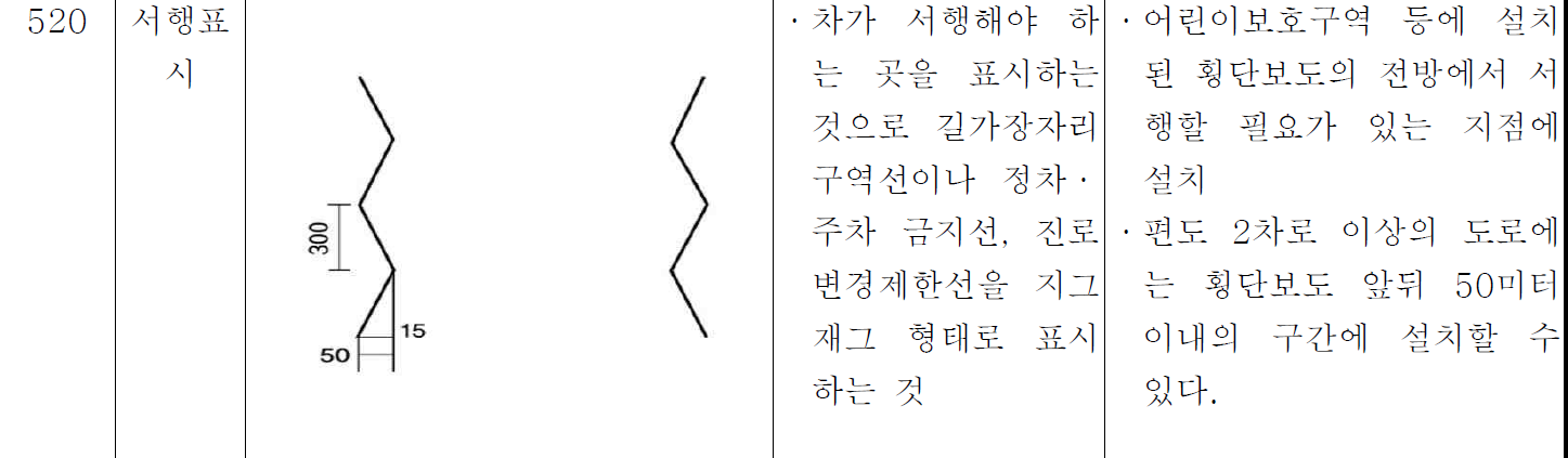 서행표시,길가장자리구역선,주정차금지선,진로변경제한선표시